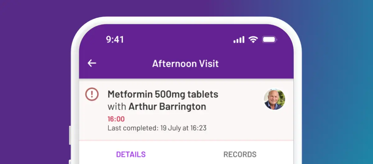 The medication administration record can then be accessed from a phone or tablet, so that carers can complete them during their care visit.