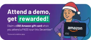 Book and attend a full PASS demo between 3 and 24 December and, if you meet the eligibility criteria, you’ll receive an Amazon gift card